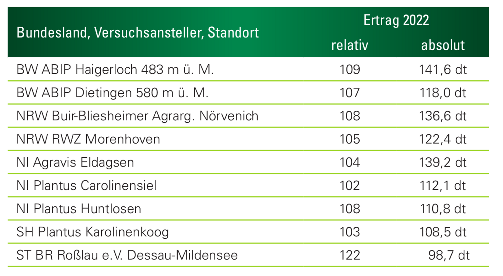 - Ertragsstark in allen Regionen