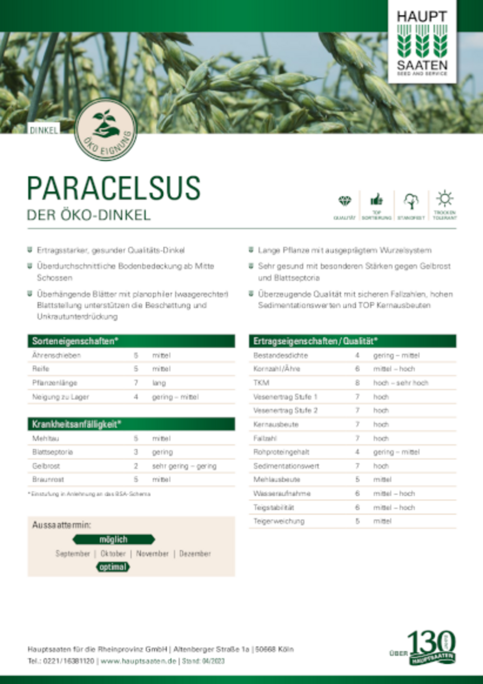 - Ertragsstarker, gesunder Qualitätsdinkel