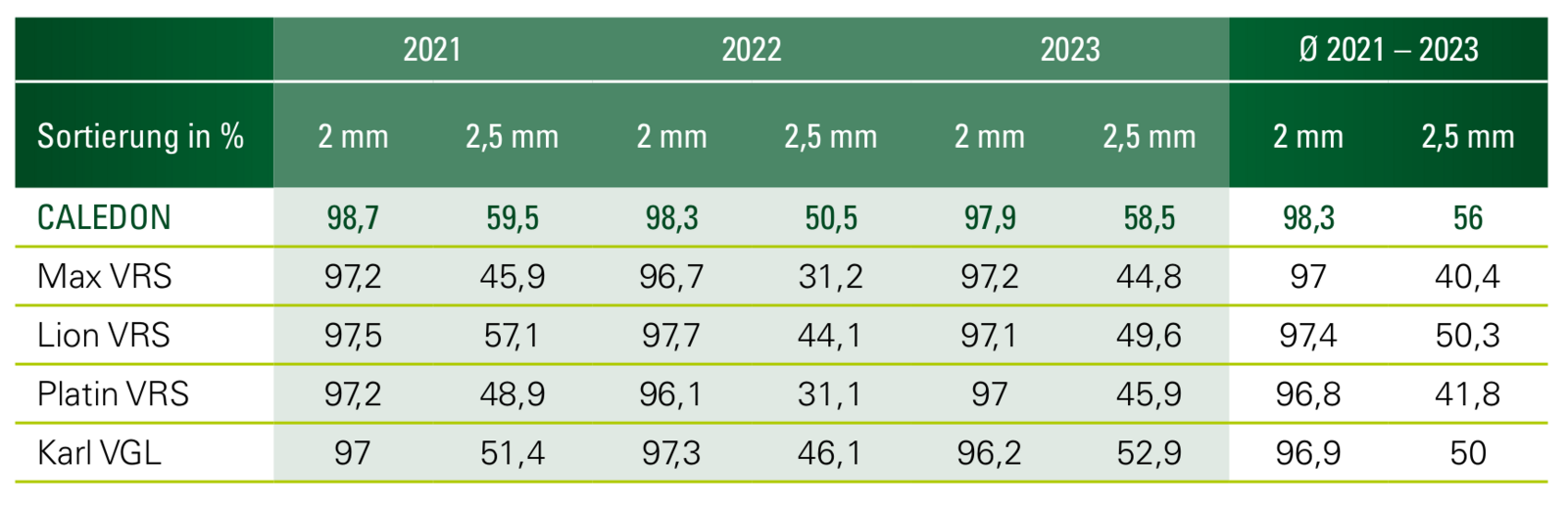CALEDON: Spitzensortierung, dank dicker Körner